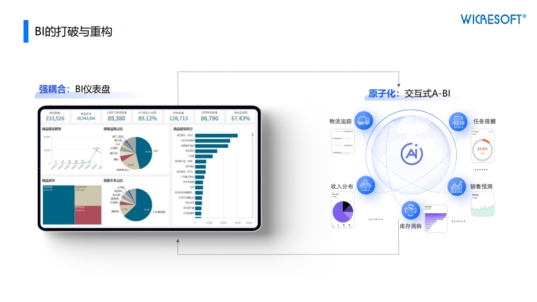 在当前的工业发展中,大模型应用已经成为C端和B端创新的关键,特别是在基于私域知识库的B端应用中表现突出。然而,传统的BI工具因其强耦合的仪表盘和高昂的成本而受到限制。针对这一挑战,微创软件通过大模型AI技术对传统BI进行了创新性的打破与重组。贾晓在演讲中提到:“我们自研的通过AI融合的BI产品,与传统BI相比,不仅实现了质的飞跃,还具备解耦的原子化特性和移动性,可以支持我们可以看到企业的所有丰富的场景,它不需要像传统 DIM 构建、数仓构建,从 ETL 去取数,进行复杂的精细的数据治理。它可以直接连接我们数据库,通过我们的中间的一个安全层,安全控制和权限控制层。”