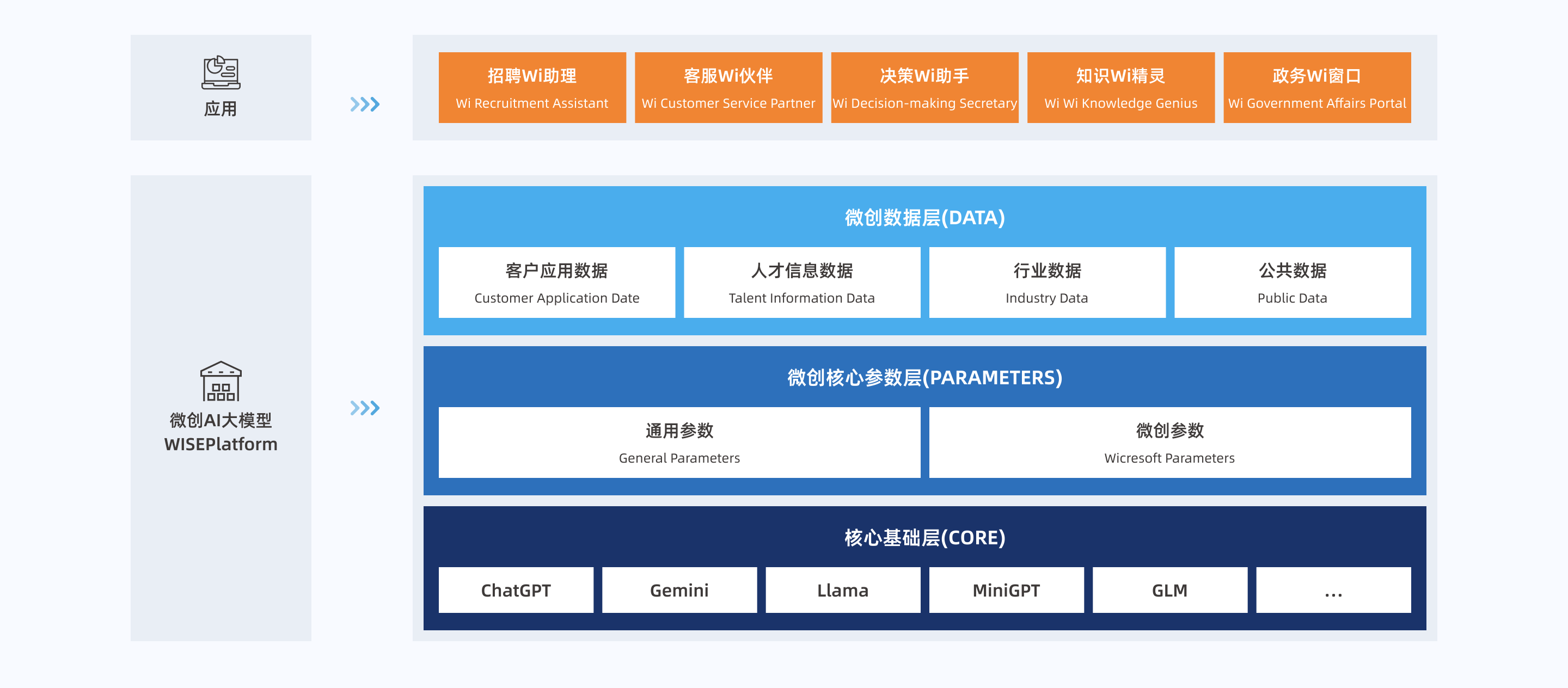 Edition)人工智能平台融合多模型,优化企业AI应用开发流程,具备稳定、多元、灵活、易用等特性。基于该平台,微创软件推出5款企业级AI智能体应用产品,适配多类型交互界面,助力企业快速构建AI工具。目前已开发出决策Wi助手、政务Wi窗口、知识Wi精灵、招聘Wi助理和客服Wi伙伴这五款应用,全面满足企业与政府在数据分析、决策、服务及工作流程等数智转型需求。
